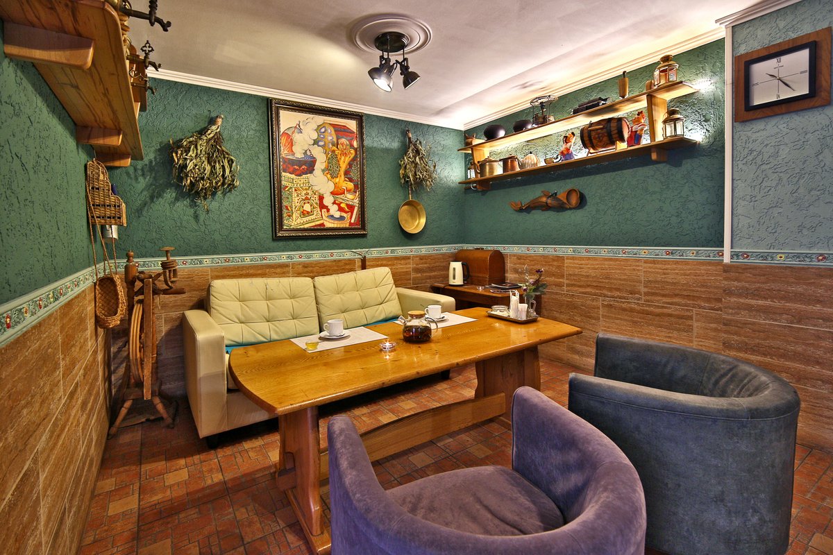 Не хочется в купель? Не беда! Вместо этого можно передохнуть в нашей комнате отдыха. Мы ставили своей целью создать здесь уютный, практичный интерьер из преимущественно натуральных, безопасных материалов, подобрать мебель, которая будет в равной степени удобной и эстетичной. Надеемся, что вам понравится! Также у нас имеется бар, а при необходимости вы можете прийти и со своей едой - мы не возражаем! Главное помните, что плотная трапеза незадолго перед посещением парной - это не самая удачная идея, по мнению докторов. А вот после парной она совсем не повредит!